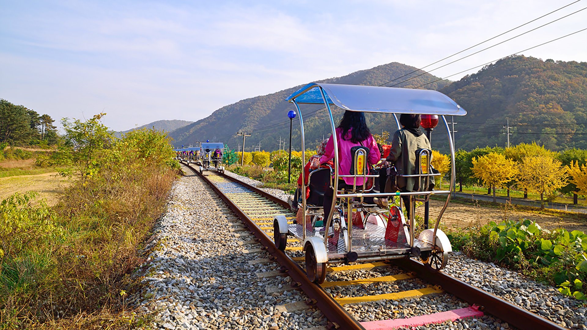 철로 위를 달리면서 자연과 하나됨을 느껴보세요.